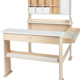 Le stand de vente en bois est un excellent ajout à l’univers de jeu de vos enfants, stimulant leur créativité et leur imagination. Grâce à sa construction robuste et à ses matériaux de qualité, il est non seulement esthétique, mais aussi sûr et durable pour des heures de jeu. Le stand est conçu pour développer les compétences de communication et sociales des enfants et leur apprendre les bases de l’interaction sociale.