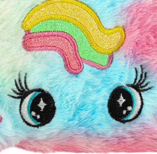 Design inspiré de la licorne avec motif arc‑en‑ciel et petites oreilles, idéal pour ranger les indispensables de beauté.
