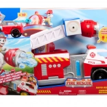 Les flancs se transforment en centre d’action : ils dévoilent une plate-forme, un bras de secours et un double lanceur. Le mécanisme à barillet rotatif permet le tir rapide de projectiles d’eau et leur rechargement automatique (jusqu’à 5). La figurine de Marshall peut partir de la plate-forme arrière directement dans le mini véhicule de secours, prêt à être envoyé en mission.