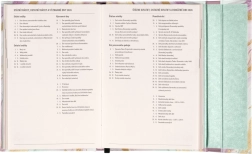 L'agenda hebdomadaire offre une mise en page horizontale avec un calendrier tchèque et slovaque. Chaque semaine est affichée sur deux pages, offrant ainsi suffisamment d'espace pour vos notes. L'agenda comprend des aperçus mensuels pratiques, idéaux pour planifier des vacances ou des congés. Il est complété par une liste des fêtes et noms tchèques et slovaques, facilitant ainsi la planification de vos activités.