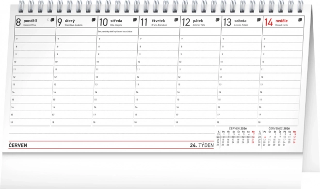 Calendrier de bureau planificateur 2026 avec fêtes européennes, idéal pour l’organisation du temps. Format 25 × 12,5 cm.