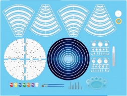 Ce kit comprend des modèles plastiques de planètes, un plateau avec des orbites, des composants pour le montage ainsi qu’un ensemble de peintures et de pinceaux. L’enfant peut peindre chaque planète selon sa propre inspiration, puis la placer au bon endroit sur la carte céleste. Un effet phosphorescent dans l’obscurité rend le projet final remarquable même après la tombée de la nuit.