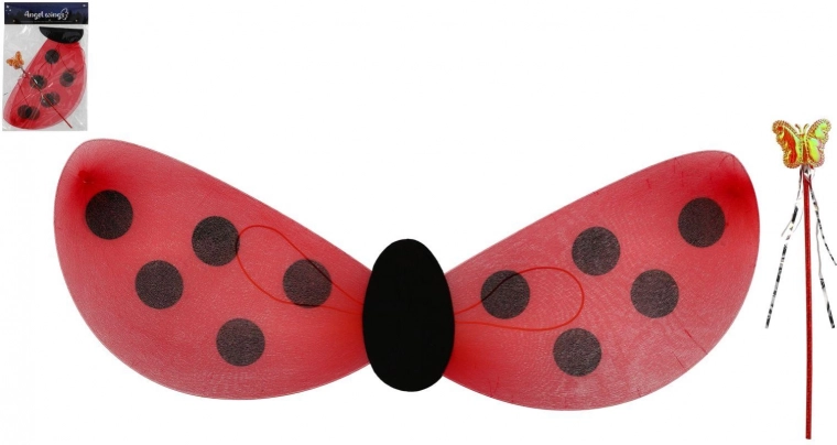 Préparez-vous pour une transformation enchantée avec ce set coccinelle pour enfants. De très légères ailes en nylon à pois noirs sont complétées par une fine baguette à embout décoratif, pour rendre carnavals, anniversaires et déguisements à la maison encore plus amusants.