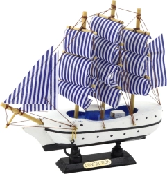 Ses voiles en textile à rayures bleu et blanc et son gréement soigné complètent son apparence de manière décorative et évoquent une brise marine fraîche. La base stable avec plaquette permet une installation facile sur toute surface.