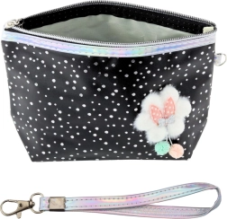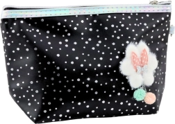 Cette trousse stylée, faisant office de trousse scolaire ou de trousse cosmétique, en coloris noir avec des détails scintillants est un accessoire pratique pour un usage de tous les jours. Son design universel permet de l’utiliser comme trousse pour fournitures scolaires ou comme trousse de maquillage pour ranger de petits accessoires. Elle dispose d’une fermeture éclair robuste et d’une dragonne pratique avec mousqueton permettant un attachement facile au sac à dos ou un port au poignet.