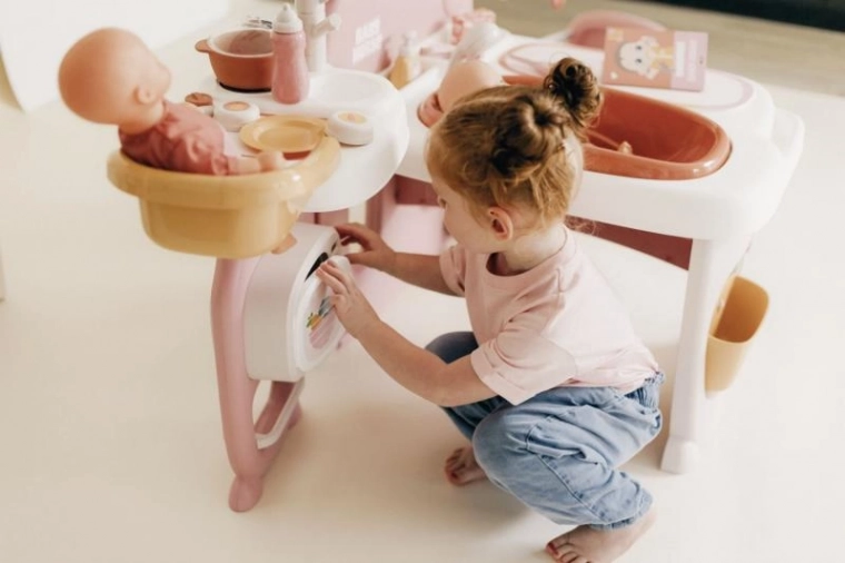 Ce centre de jeu unique propose trois zones de jeu — cuisine, salle de bain et chambre — offrant à votre enfant tout le nécessaire pour un jeu réaliste.