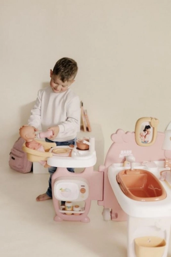 Centre de jeu pour poupées Baby Nurse avec trois zones, pliable et facile à transporter. Parfait pour les poupées jusqu’à 42 cm.