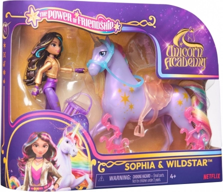 Le set de figurines Académie des Licornes : Petites poupées Sophia et Gwiazda offre une superbe expérience de jeu. La poupée Sophia, haute de 11 cm, présente des détails réalistes, notamment des symboles de pouvoir métallisés et 7 points d’articulation pour des poses dynamiques.