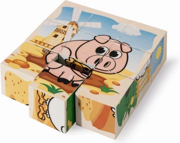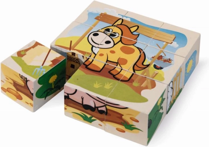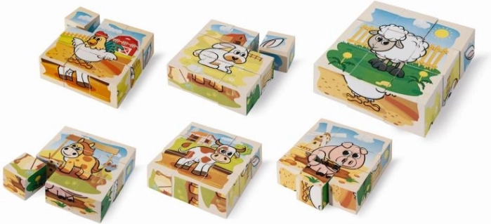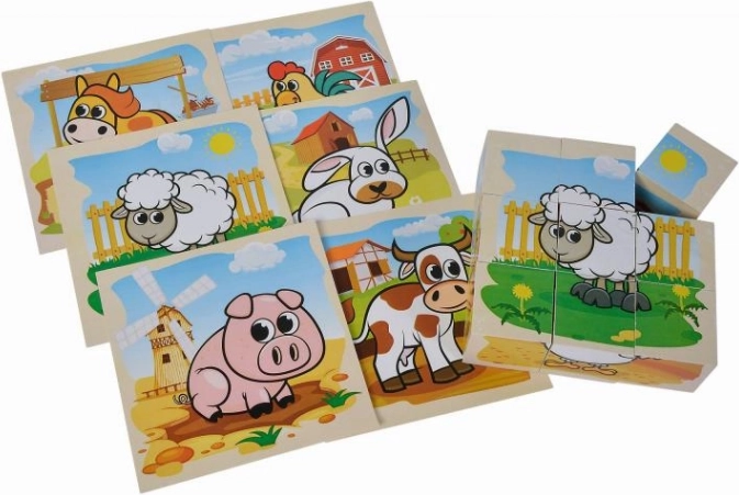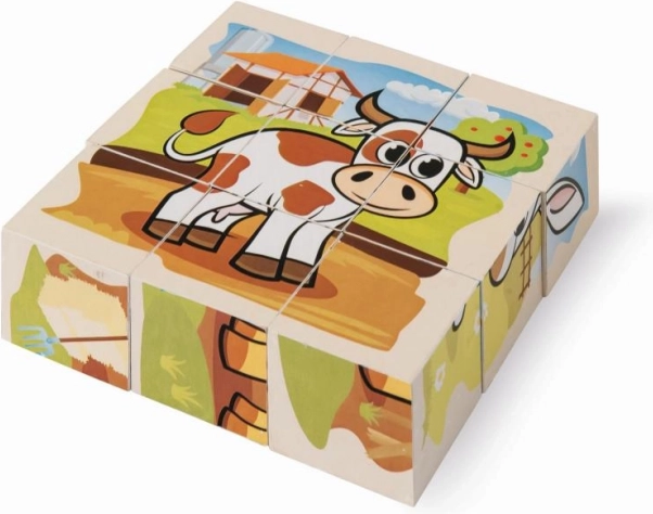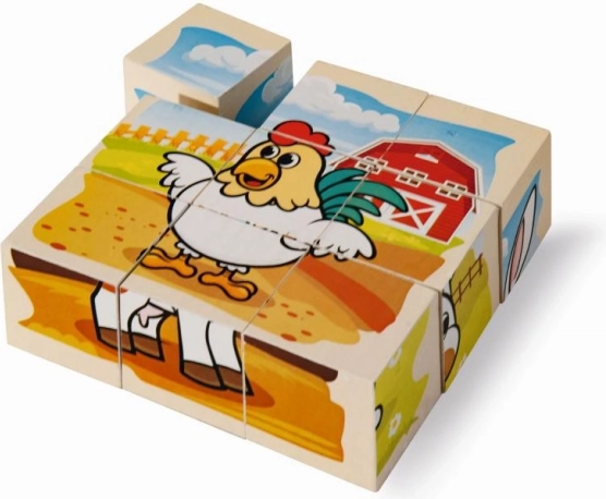 Cubes d’images en bois EICHHORN avec motif de ferme, 9 pcs