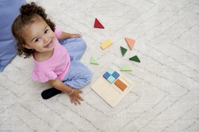 Découvrez un jeu malin pour les tout-petits : un puzzle en bois Montessori avec un plateau composé de 4 carrés et 12 pièces colorées. Le but est de remplir la surface du carré tout en développant la logique, la motricité fine et la perception des couleurs. Fabriqué en bouleau et tilleul 100 % FSC, adapté dès 2 ans.