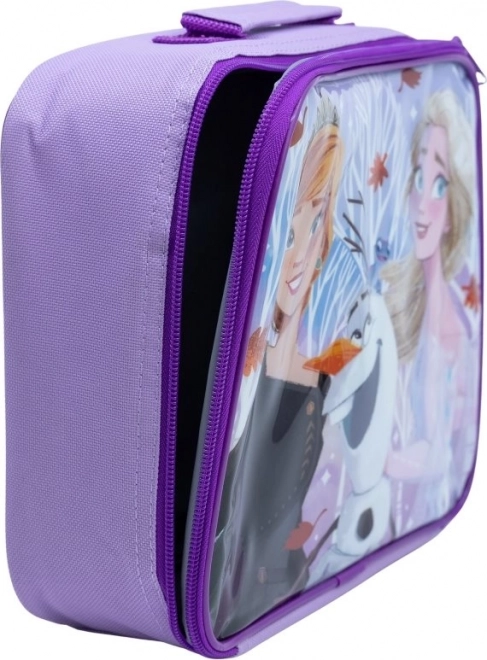Sac isotherme pour goûter Frozen avec couche isolante, 1 grande compartiment, zip métallique et étiquette nominative. Poignée pratique, idéal pour l’école et les sorties.