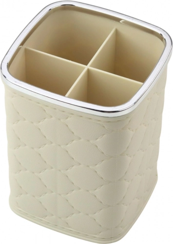 Pratique organisateur pour pinceaux de maquillage avec quatre compartiments pour garder vos accessoires de beauté parfaitement ordonnés. Grâce à sa construction stable et à ses dimensions compactes, il convient aussi bien à la coiffeuse qu’au salon. Nettoyage facile et élégant design blanc s’intègrent à tout intérieur.