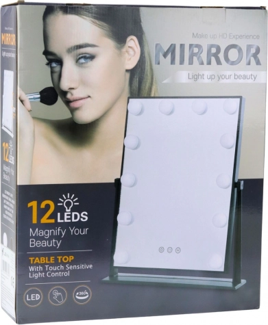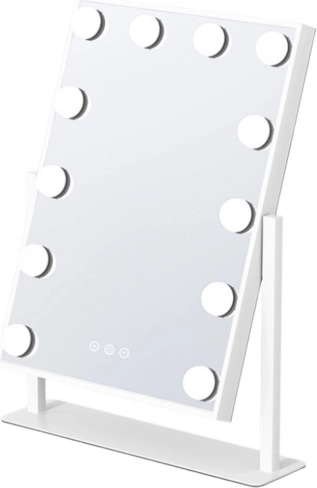 Élégant miroir hollywoodien avec 12 ampoules LED offrant une lumière uniforme et lumineuse pour un maquillage et des coiffures impeccables. Le panneau tactile permet 3 couleurs de lumière (blanc chaud, neutre, froid) et un gradateur continu avec fonction mémoire. La structure métallique stable et le cadre pivotant à 360° garantissent l’angle idéal. Un accessoire stylé pour coiffeuse, salle de bain ou salon.