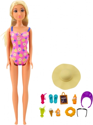 Poupée ANLILY à la plage : poupée 30 cm avec piscine, palmier, toboggan et stand de boissons. Nombreux accessoires pour un jeu créatif et des plaisirs d’été.