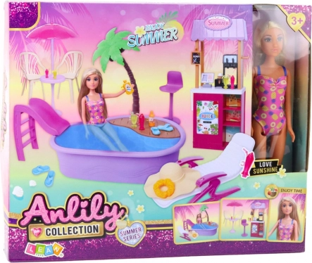 Poupée ANLILY à la plage avec piscine et stand de boissons
