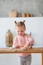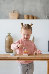 Le jouet est fabriqué en bois dur (érable, hêtre) provenant de sources durables et peint avec des peintures à base d’eau, inodores et non toxiques. Il répond aux strictes normes de sécurité européennes et constitue donc un excellent choix pour un usage quotidien.