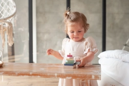 • 8 pièces pour empiler une pyramide avec petite poule dans une progression harmonieuse de couleurs