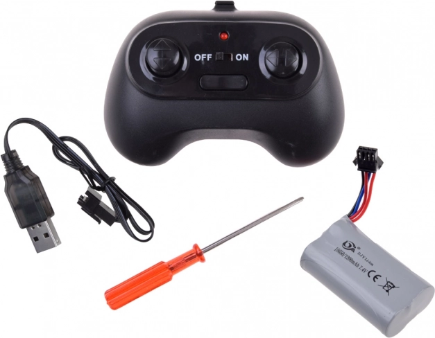 - Contrôle facile 2,4 GHz – marche avant/arrière, virages et rotation sur place.