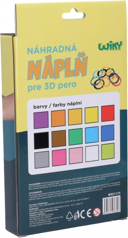 Lot de 15 recharges colorées pour stylo 3D WIKY, 3 m chacune. Utilisation facile, emballage en tchèque, idéal pour projets créatifs et modélisme.