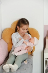 Lors de l’alimentation et avec la tétine, elle bouge délicatement sa bouche et sait ouvrir et fermer les yeux, ce qui favorise un jeu authentique autour du bébé.