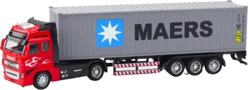 Ce jouet détaillé reproduit fidèlement un véritable véhicule de transport – de la cabine du conducteur avec impressions jusqu’au grand conteneur. Grâce au mécanisme à rétrofriction, il suffit de tirer le véhicule en arrière et de le relâcher – le camion part vers l’avant et garantit beaucoup d’action.