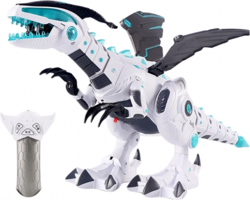 Dinosaure robot RC télécommandé avec lumières et sons – blanc