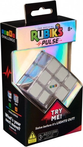 Pulse Cube apporte le plaisir classique du CUBE de RUBIK dans une version lumineuse moderne. Active la lumière interne éclatante avec le bouton logo, qui révèle les couleurs et lance le compte à rebours de 60 secondes. À mesure que le temps passe, la lumière pulse de plus en plus intensément puis s’éteint – sauras-tu terminer à temps ?