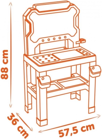 Offrez aux enfants leur propre atelier qui ressemble à un vrai établi de papa. L’atelier pour enfants Black+Decker Bricolo Center de Smoby développe la motricité fine, la créativité et les compétences techniques. Le grand plan de travail au décor bois offre suffisamment d’espace pour visser, mesurer et marteler.