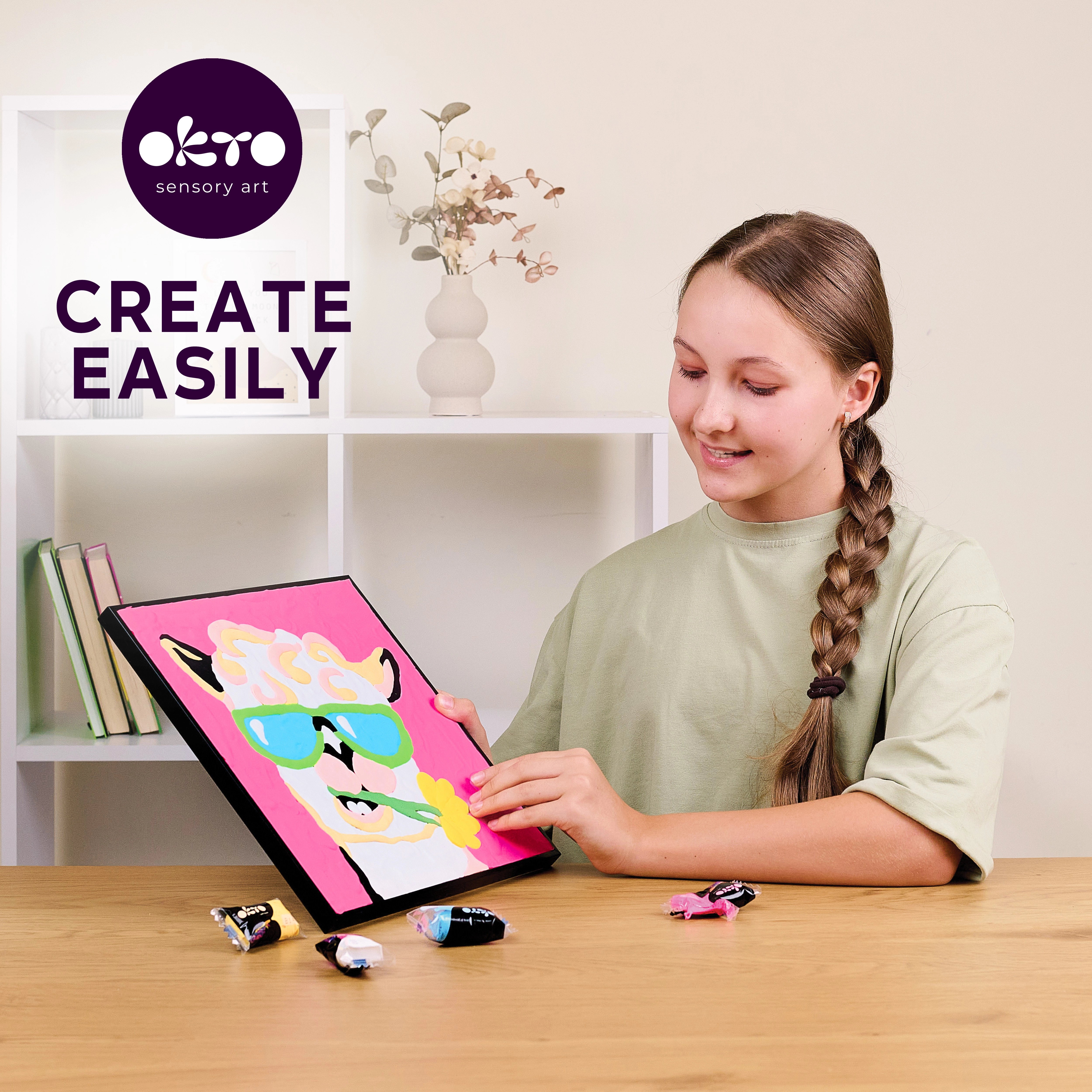 Découvrez une façon ludique de créer avec une pâte de modelage en relief qui apporte une texture unique au tableau. Grâce aux numéros, vous progressez pas à pas et obtenez un excellent résultat même sans expérience préalable. Le motif de lama adorable convient à une chambre d’enfant ou comme cadeau original.