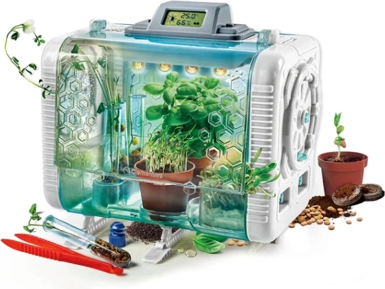 Cette serre intelligente relie jeu et apprentissage. Les enfants réalisent de véritables expériences botaniques, définissent 3 modes de croissance différents et découvrent pas à pas ce dont les plantes ont besoin pour germer et prospérer. Des capteurs intégrés mesurent en continu les conditions clés et les affichent clairement sur l’écran LCD.