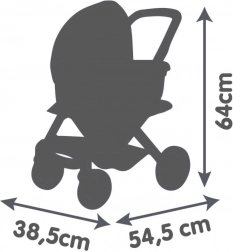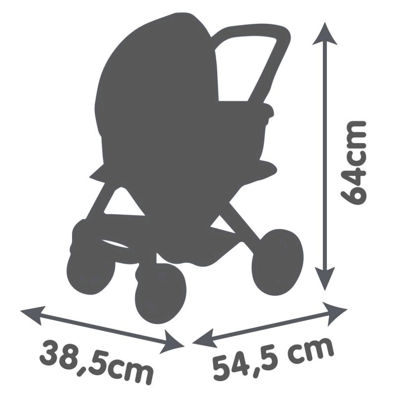 Poussette pour poupées élégante 3 en 1 avec landau interchangeable et possibilité de transformation rapide en poussette sport. Elle offre des roues avant pivotantes pour une manœuvrabilité aisée, une conduite silencieuse grâce à la couche antibruit des roues et une poignée ergonomique à 65 cm de hauteur. Les housses en tissu plastique résistant se nettoient facilement avec un chiffon humide. Convient aux poupées jusqu’à 42 cm.