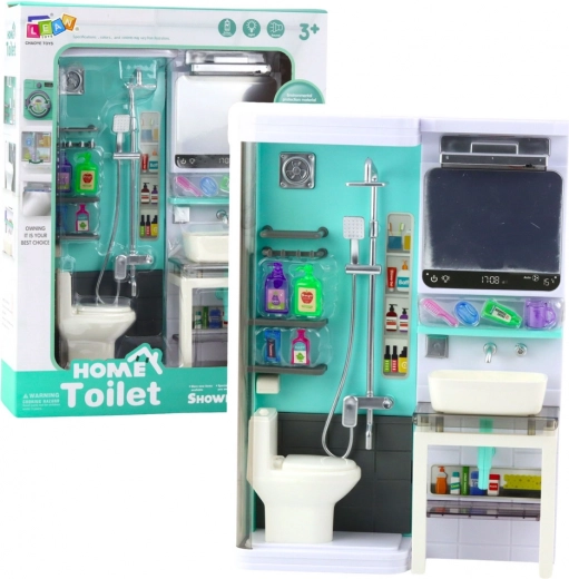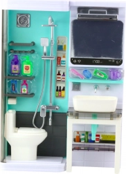 Ce set de salle de bain détaillé plonge les enfants dans l’univers des activités quotidiennes. Il comprend des toilettes, un lavabo avec miroir rétroéclairé, une douche et un large assortiment d’accessoires pour le soin du corps et des dents. Les lumières et sons interactifs apportent authenticité et amusement au jeu.
