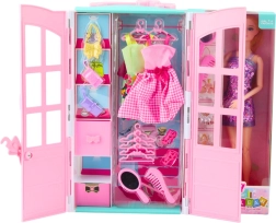 Ce set richement équipé ravira tout enfant qui aime la mode et le style. L’armoire ouvrante avec étagères cache de jolies petites robes, des cintres pratiques, des chaussures et des sacs à main assortis. Grâce au miroir et au peigne, la poupée se prépare pour chaque occasion. Le jeu développe l’imagination, la motricité fine et le sens des associations de couleurs et de styles.