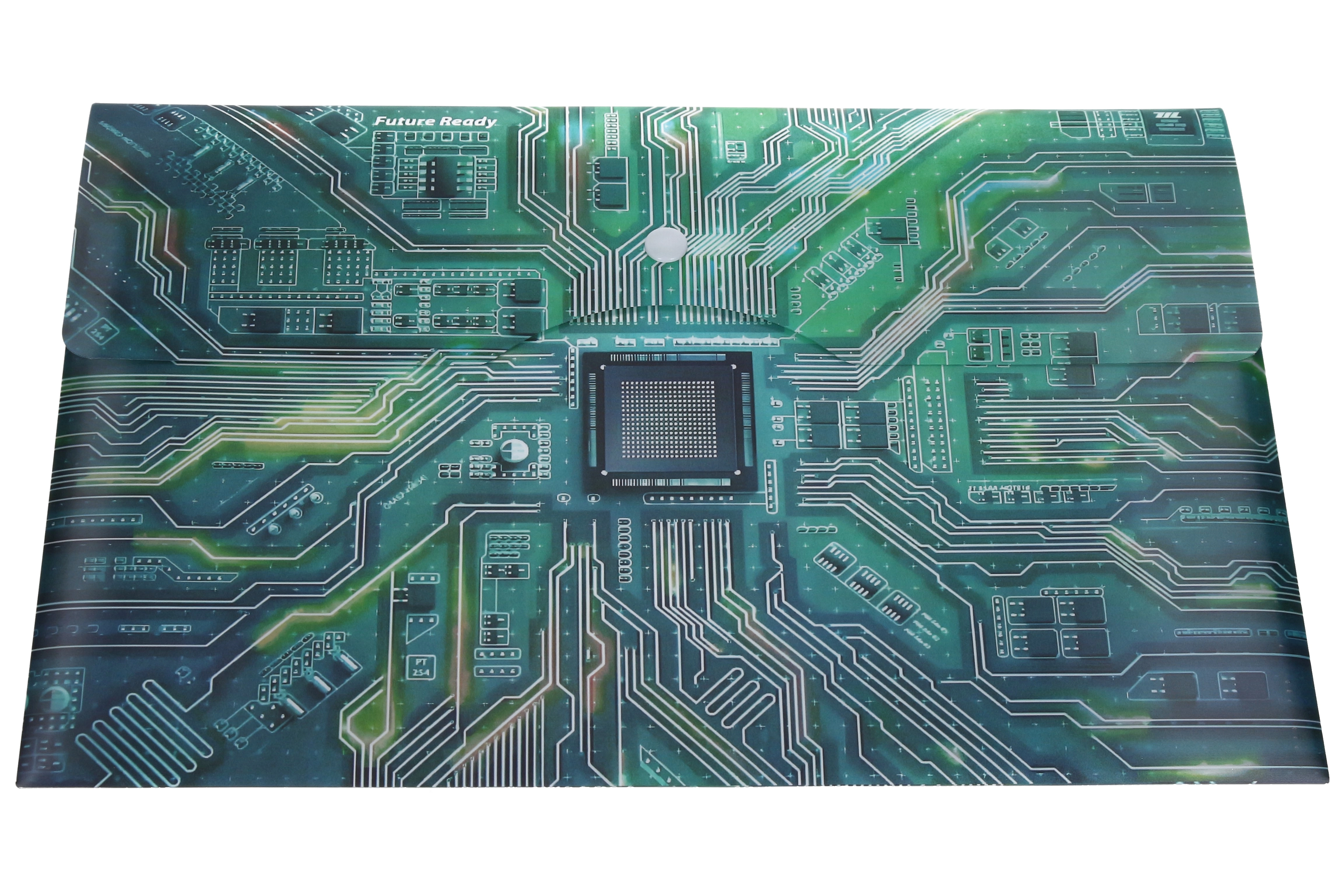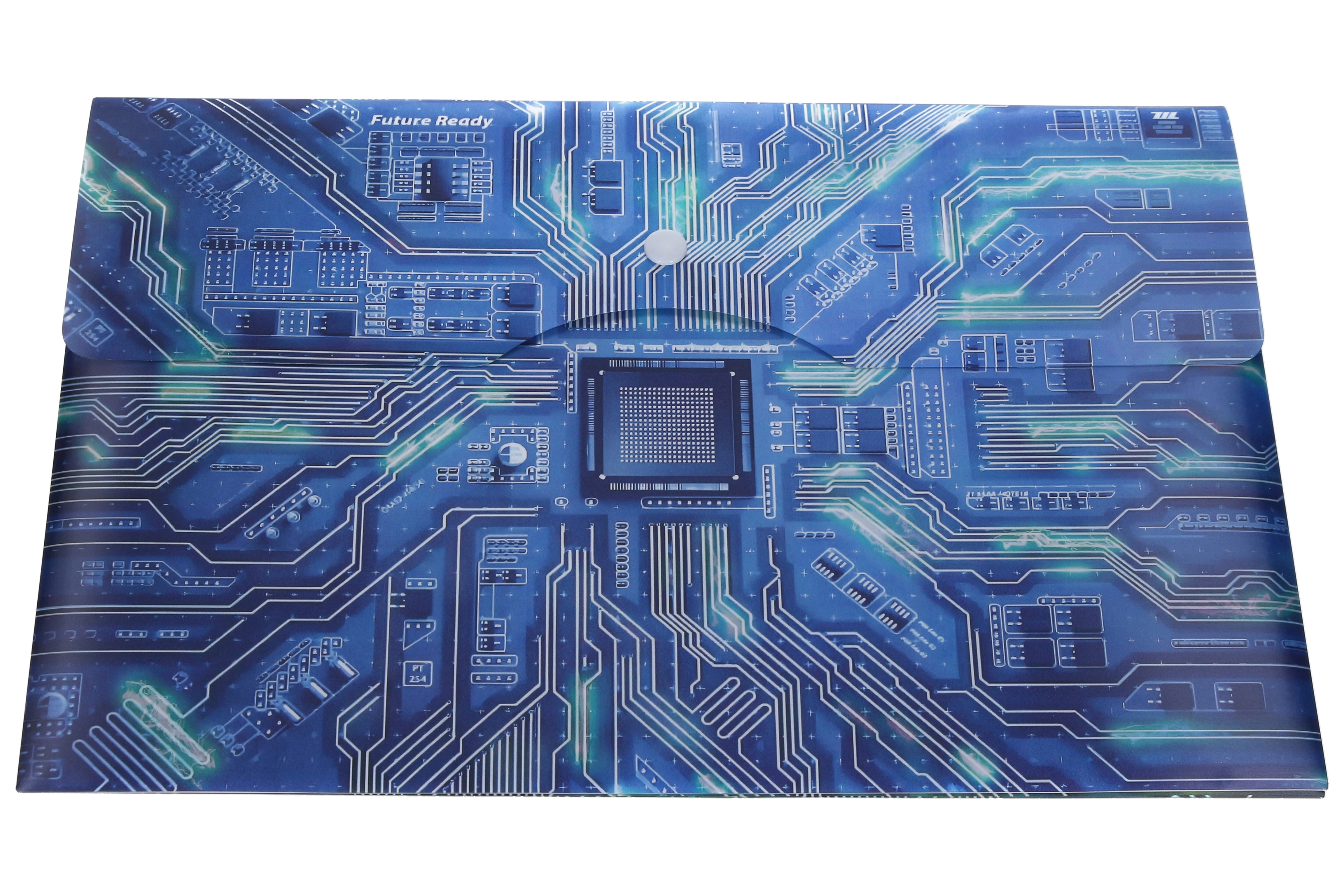 Parfaite pour l’école, les cours et le bureau – elle plaira aux étudiants, passionnés d’informatique et professionnels. Choisissez parmi 4 variantes de couleur avec un graphisme de circuits imprimés marquant, pour donner à vos supports un style technologique original.