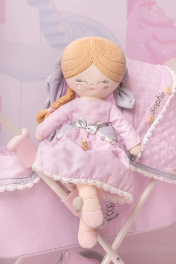 La collection SOPHIE 2025 se distingue par son style romantique en rose tendre, complété de dentelles et petits nœuds en gris clair et blanc. La poupée est livrée dans un emballage de protection, prête à être offerte.