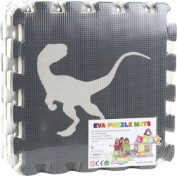 Puzzle de sol en mousse EVA avec motif dinosaures, contrastes gris et beige, 9 pièces
