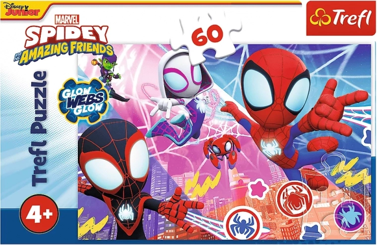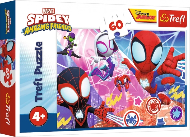 Puzzle pour enfants avec le motif SPIDEY et ses amis, offrant un assemblage amusant de 60 pièces et mesurant une fois terminé env. 33 × 22 cm. Idéal pour développer la motricité fine, la patience et la pensée logique.