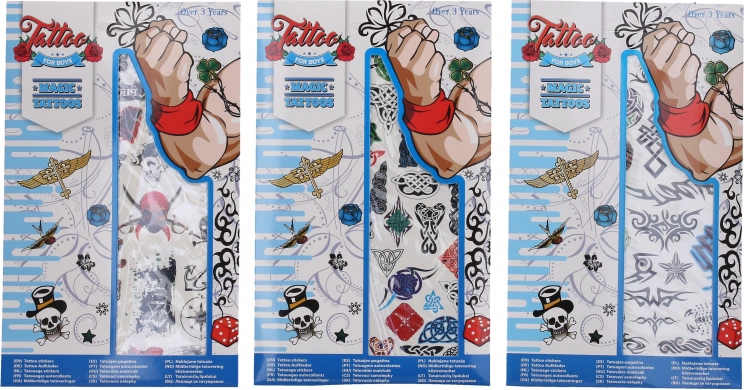 Amusants et sûrs, les autocollants tatouages pour garçons se présentent sous forme de planche pratique de 25 cm. Application facile, retrait rapide du papier et super motifs en 3 variantes. Idéal pour les fêtes, les cadeaux et le jeu au quotidien.