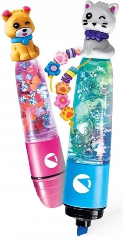 Coffret créatif Clementoni Idea Sweet Pets pour fabriquer 2 surligneurs. Encres colorées, décorations et outils. Stimule la créativité des enfants dès 6 ans.