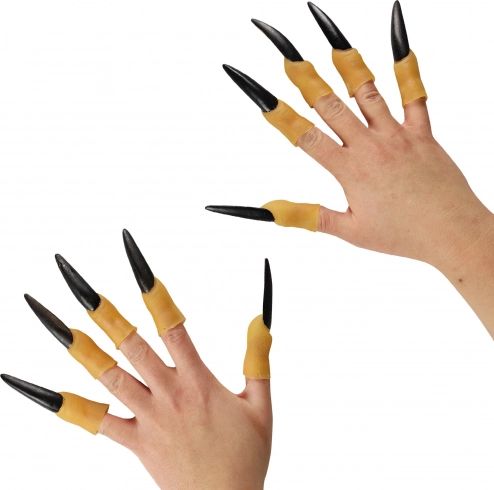 Doigts de sorcière en caoutchouc effrayants pour Halloween. Lot de 10 pièces avec de longs ongles noirs – accessoire idéal de costume pour enfants et adultes.