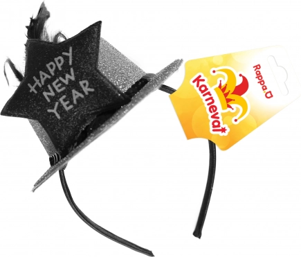 Serre-tête stylé avec mini chapeau doré HAPPY NEW YEAR. Fixation confortable avec élastiques, taille universelle. Idéal pour le réveillon et les soirées.