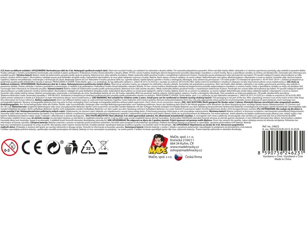 Cette voiture RC est conçue pour une conduite sûre et amusante, à la maison comme en extérieur. Grâce à sa commande simple, les enfants s’en sortent même sans expérience préalable, tandis que la carrosserie en plastique résistant supporte les chocs et obstacles du quotidien.