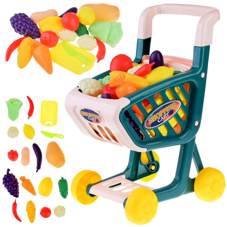 Adorable chariot de courses pour enfants avec un riche ensemble de fruits et légumes, offrant un excellent divertissement pour jouer au magasin. Conception en plastique légère et résistante, roues larges et poignée ergonomique permettant aux enfants de pousser facilement le chariot, tandis que les accessoires colorés stimulent l’imagination et les compétences sociales.