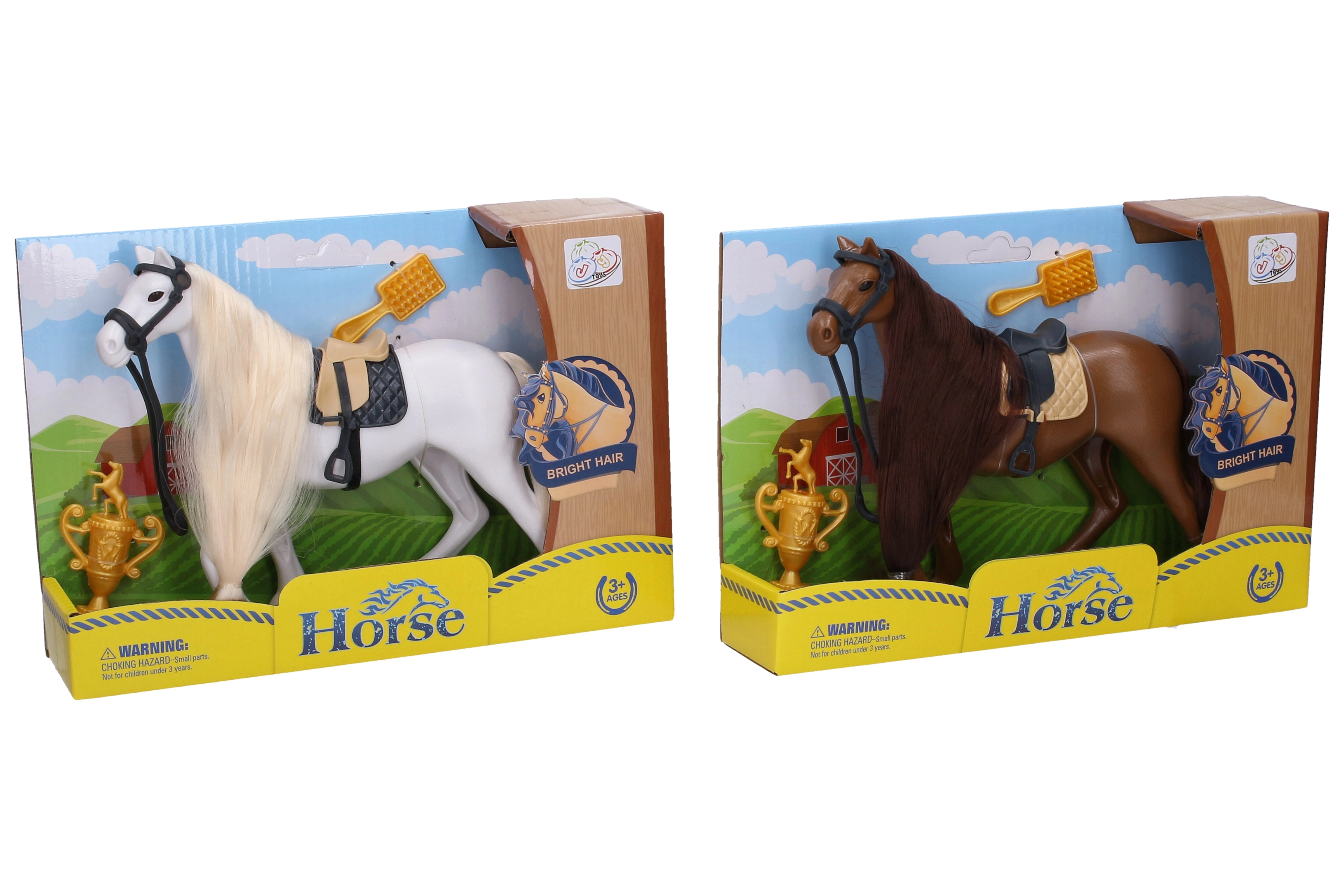 Un cheval réaliste de 19 cm disponible en deux couleurs (marron et blanc) ravira tous les petits amoureux des chevaux. L’ensemble comprend un cheval avec selle et bride, un trophée et une brosse pour soigner la crinière – idéal pour jouer au club d’équitation et stimuler l’imagination.