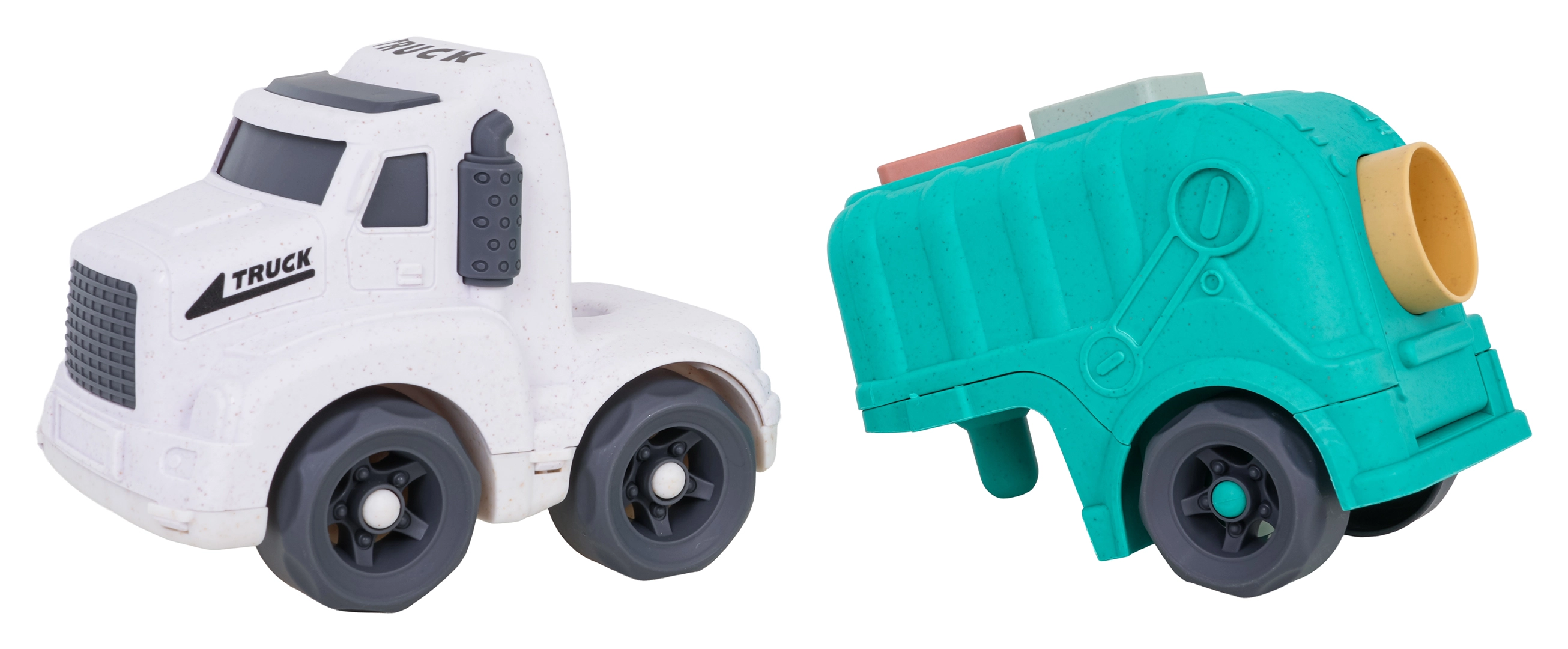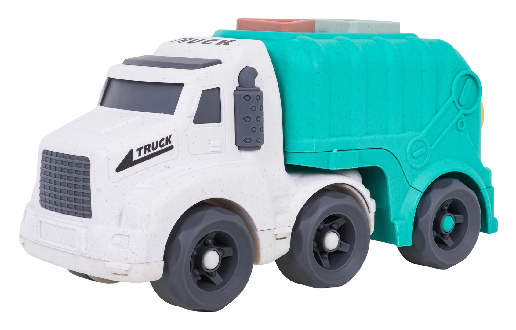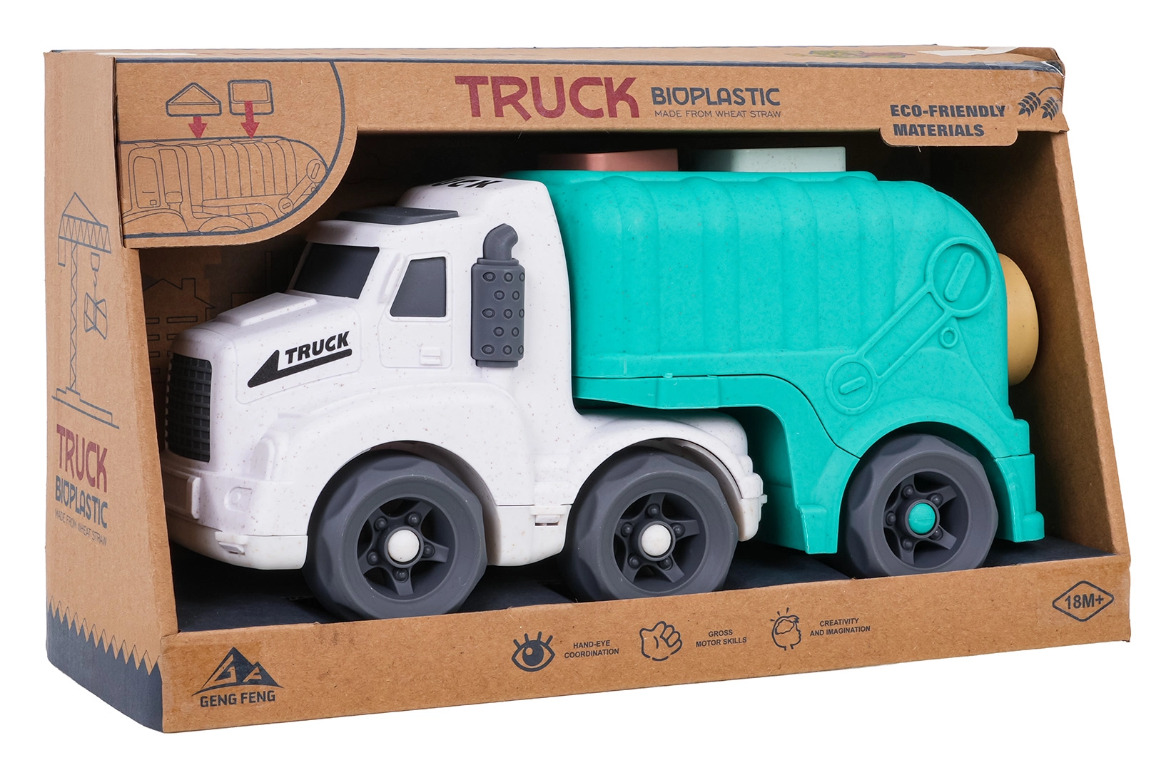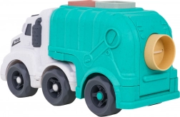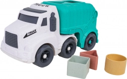 Découvrez un jouet amusant et durable pour les tout-petits : un camion-benne fabriqué en bioplastique de qualité. Grâce au trieur de formes sur le toit et sur la trappe arrière, les enfants exercent la reconnaissance des formes et des couleurs, tandis que les roues mobiles invitent à un jeu créatif et dynamique. La trappe arrière ouvrante permet un accès rapide aux blocs et facilite la répétition du jeu.