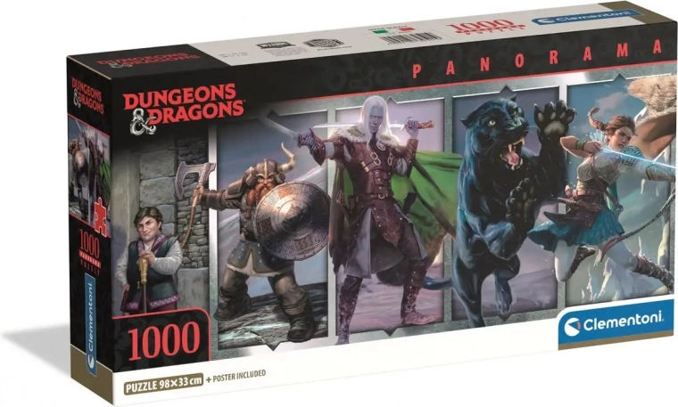 Le puzzle panoramique CLEMENTONI apporte l’atmosphère épique de l’univers DUNGEONS & DRAGONS dans une réalisation de haute qualité. Grâce aux découpes précises, aux couleurs intenses et au carton résistant, l’assemblage est fluide et le résultat parfaitement spectaculaire.