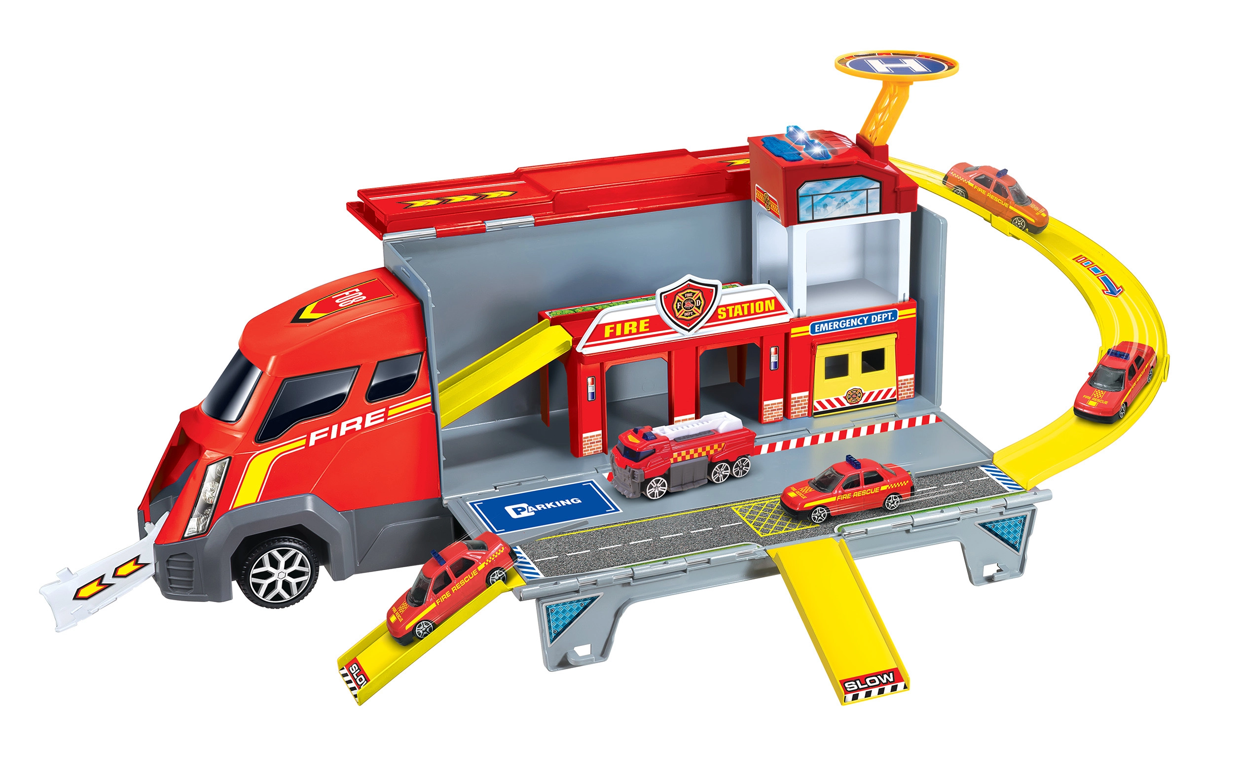 • 2 en 1 : camion et caserne de pompiers dépliable