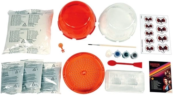 La boîte contient tout le nécessaire pour créer et cultiver – du récipient et des graines, à la terre et au plâtre, jusqu’aux moules et aux peintures à la détrempe. Vous réaliserez ainsi pas à pas une décoration originale inspirée du monde de l’Upside Down, idéale pour les fans de la série et les amoureux de projets créatifs.