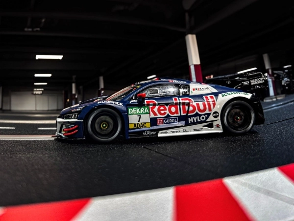 Voiture de course pour circuit de la série Digital 132 à l’échelle 1:32, représentant l’iconique AUDI R8 LMS GT3 evo II aux couleurs de l’équipe ABT SPORTSLINE / RED BULL portant le numéro 7 du DTM 2024. Elle offre des phares avant et feux arrière fonctionnels, des balais de contact doubles pour une alimentation fiable et une conduite stable grâce au magnét et au guide. Sont inclus dans la boîte des balais de contact de rechange, un guide et d’autres accessoires.