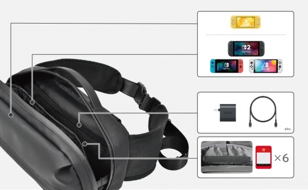 - Accès rapide pour Joy-Con, cartes de jeu, câbles, écouteurs